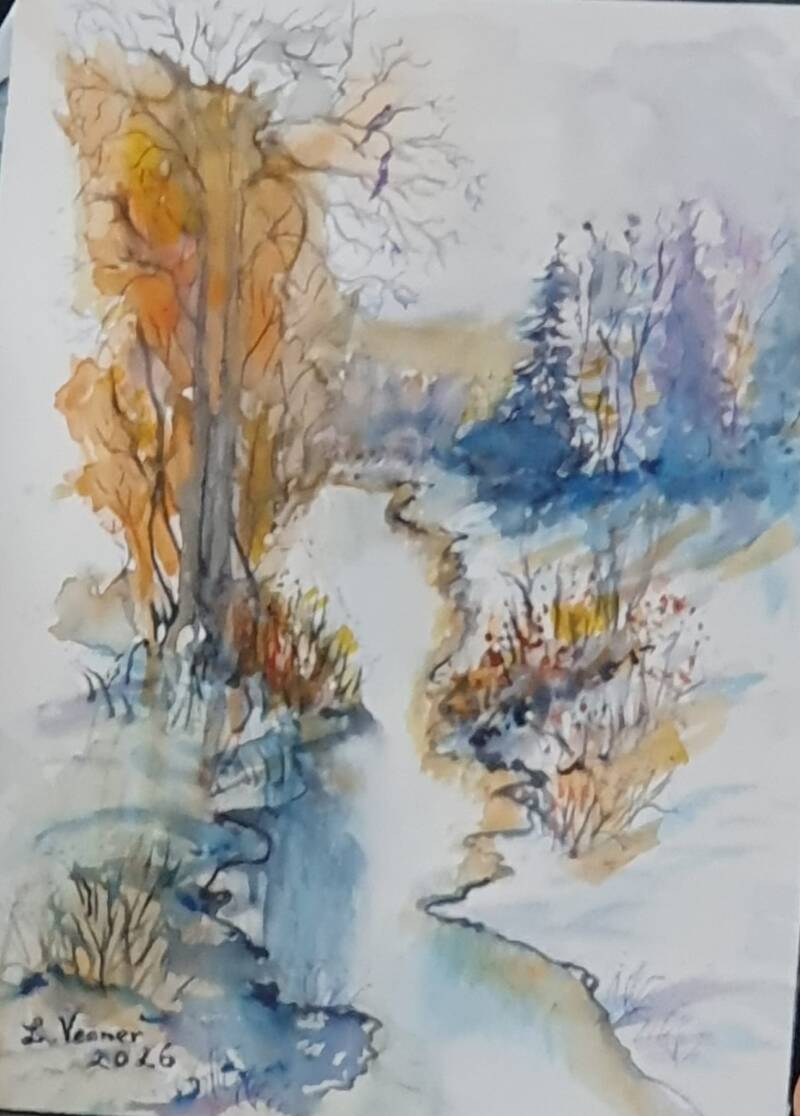 L 33 Wintersonne Aquarel Leinwand Din A3
