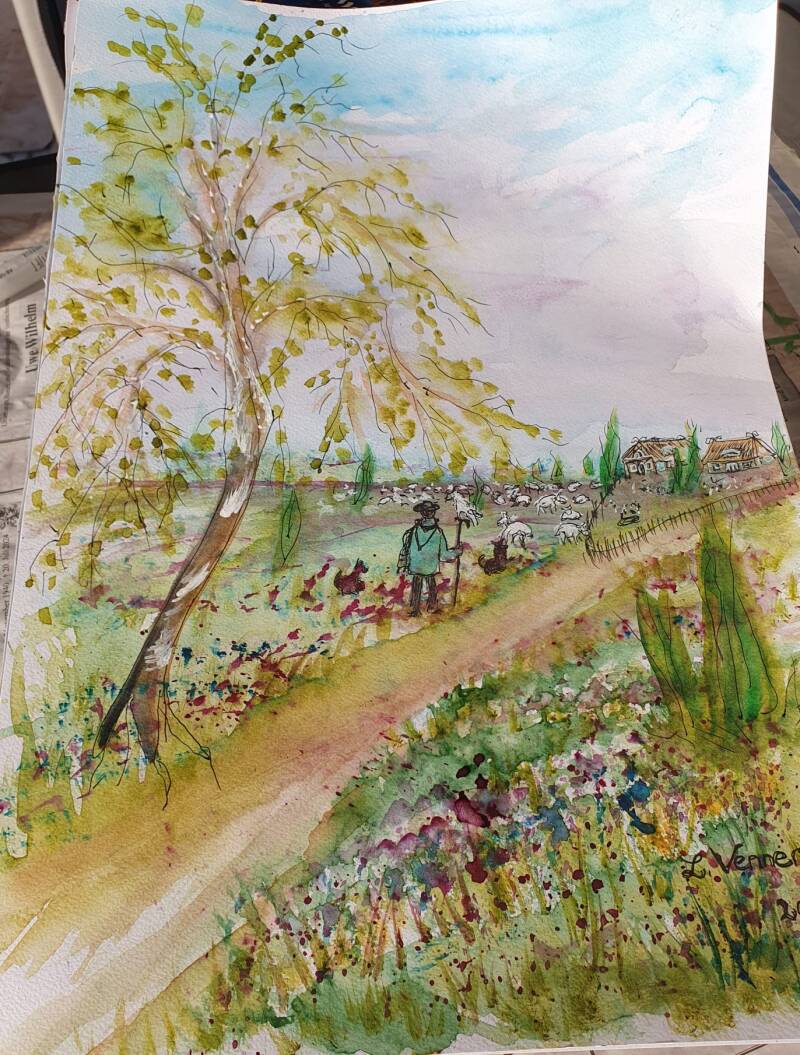 L10 Heideschäfer 30x40 Blatt Aquarell